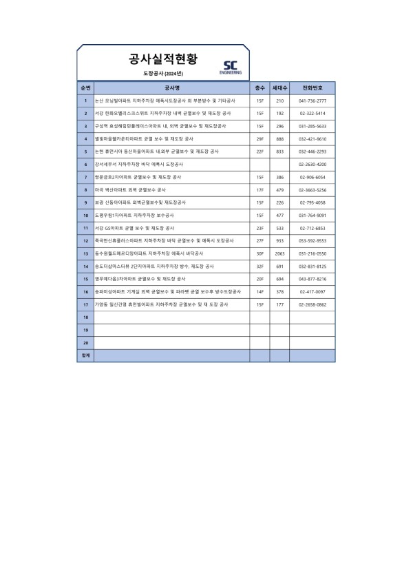 2024년 도장 공사 실적 현황