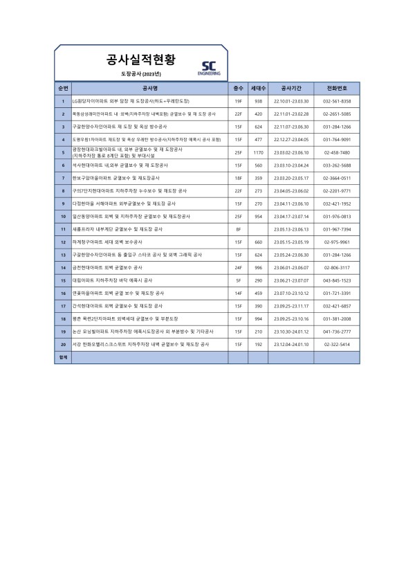 2023년 도장 공사 실적 현황