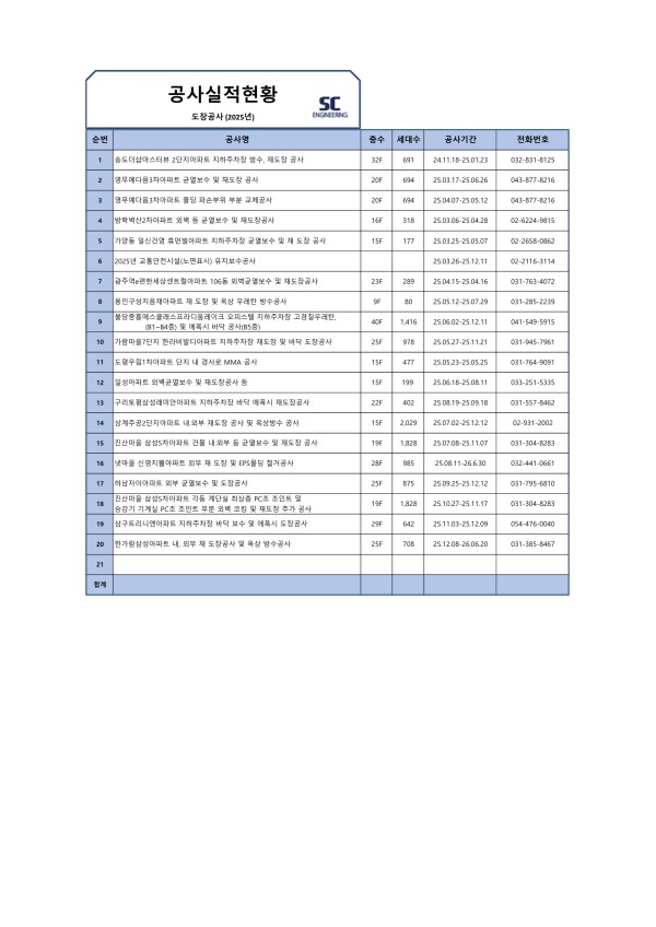 2025년 도장 공사 실적 현황